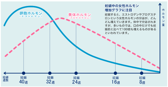 妊娠すると女性ホルモンが増えます。実は、女性ホルモンは歯周病菌の大好物です。だから、口の中に女性ホルモンが増えれば、歯周病菌もどんどん増えていくのです。